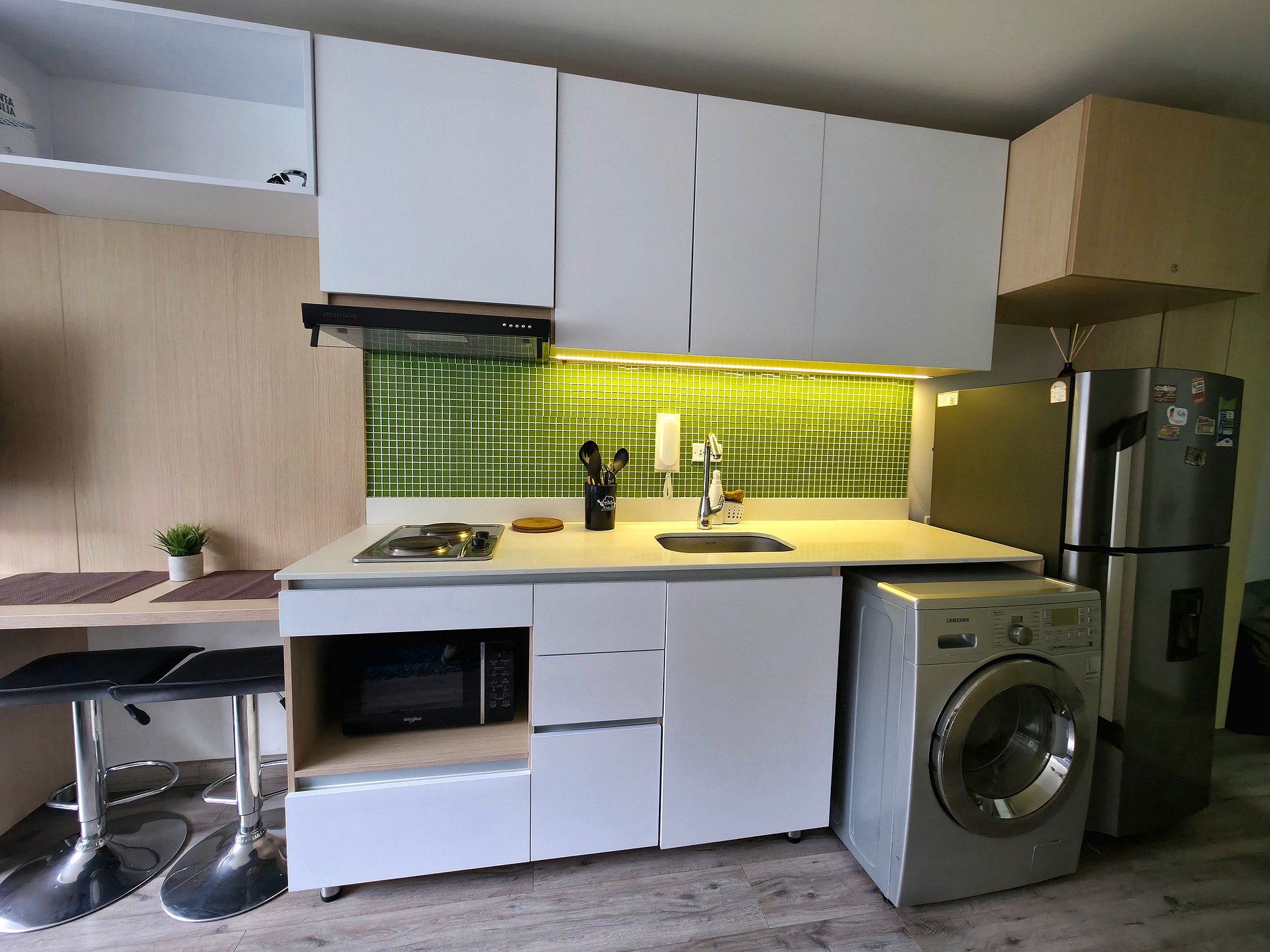 Cozy and comfortable loft-type studio apartment, Located on the 6th floor with excellent natural lighting, it has a double bed, equipped kitchen, refrigerator, washing machine and dryer, closet-type compartments, very comfortable single sofa bed, 50-inch TV with Netflix, wifi with fiber optics, blackout. An ideal place to feel at home.