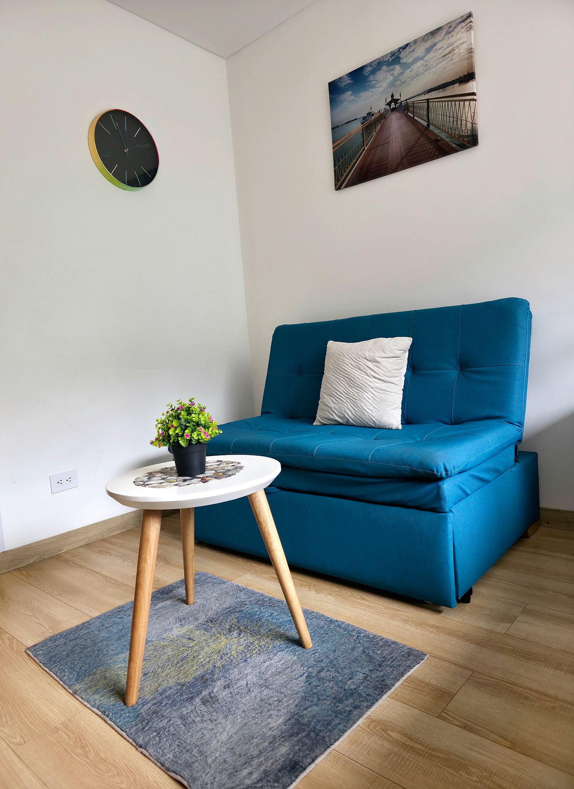 Modern and comfortable loft with an excellent mountain view located in North point Hills. It has a double bed, equipped kitchen, refrigerator, washer - dryer, water heater, closet-type compartments, very comfortable semi-double sofa bed, 50" TV, Netflix, wifi with fiber optics, curtain and blackout. Private parking option and autonomous arrival with Digital lock,