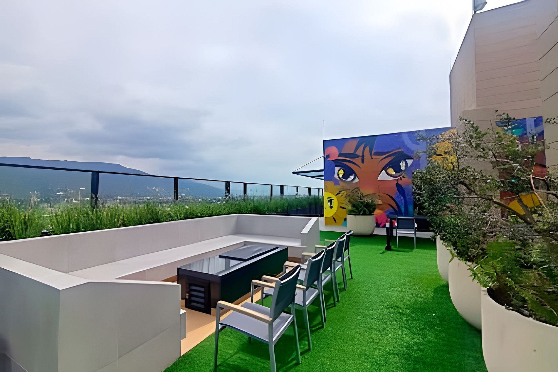 It is a new building with 24-hour security service, large common areas 100% equipped to share with family and friends. It has a large and complete gym, social area, Media Room space, 2 Coworking and reading rooms, games area, terrace with panoramic view, barrel-type BBQ, fire pit.