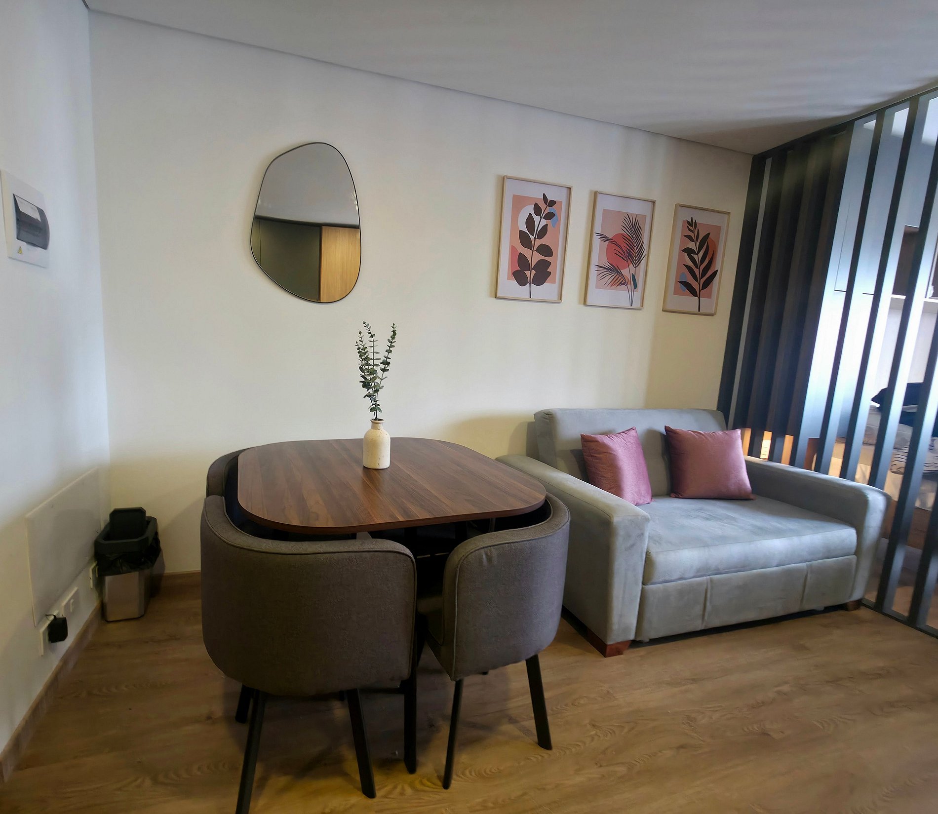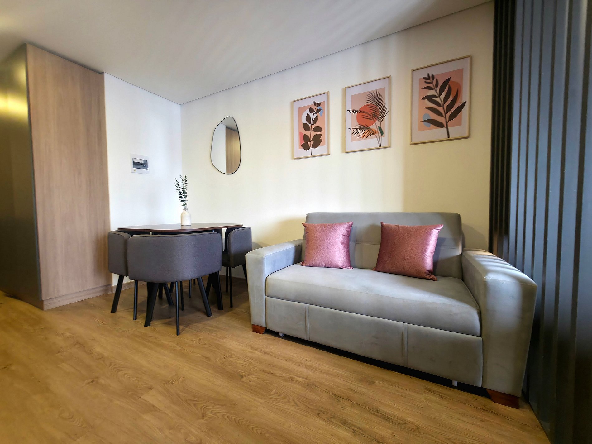 Confortable y tranquilo loft, con una decoración minimalista y una hermosa vista a la montaña, ubicado en el conjunto North Point Hills, ideal para una estadía por negocios, turismo y/o estudio. Con todo lo necesario para una larga estadía, el apartamento cuenta con cocina equipada, microondas, cafetera, lavadora- Secadora, tendedero de ropas, secador de cabello, mesa de planchar y plancha de ropa, amplios compartimentos tipo closet, Cama doble, sofacama doble muy cómodo, Tv Smart, wifi con fibra óptica, cortina y blackout.
