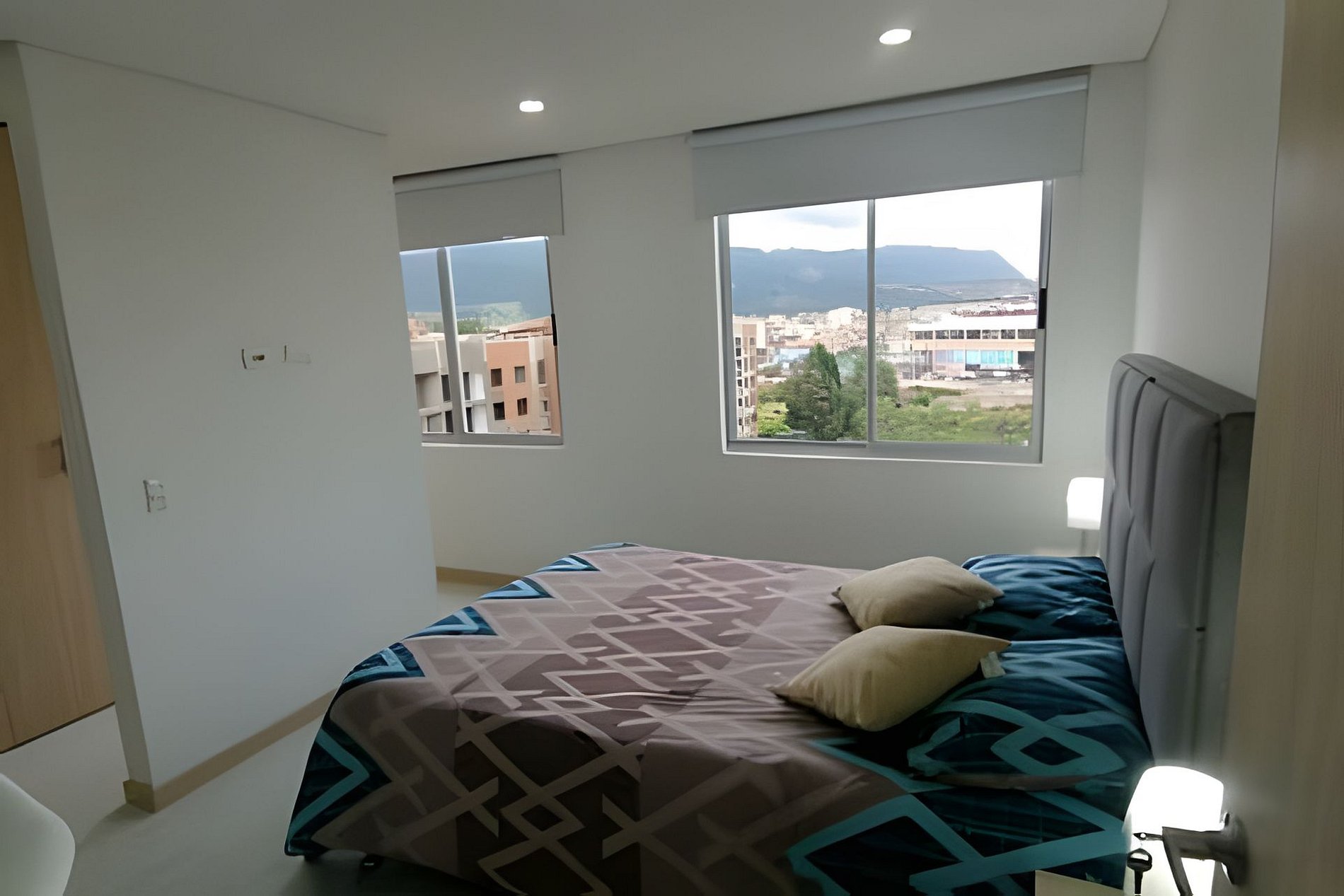Apartaestudio con amplios espacios, el cuarto principal cuenta con iluminación natural y hermosa vista de Cajicá, cama doble, amplio Closet de ropa, baño privado y calentador de agua. Sala de estar con Sofacama doble, comedor y una amplia cocina integral equipada, espacio de estudio para trabajo Home Office y un amplio balcón con vsita hacia el coliceo de Cajicá y la sabana.