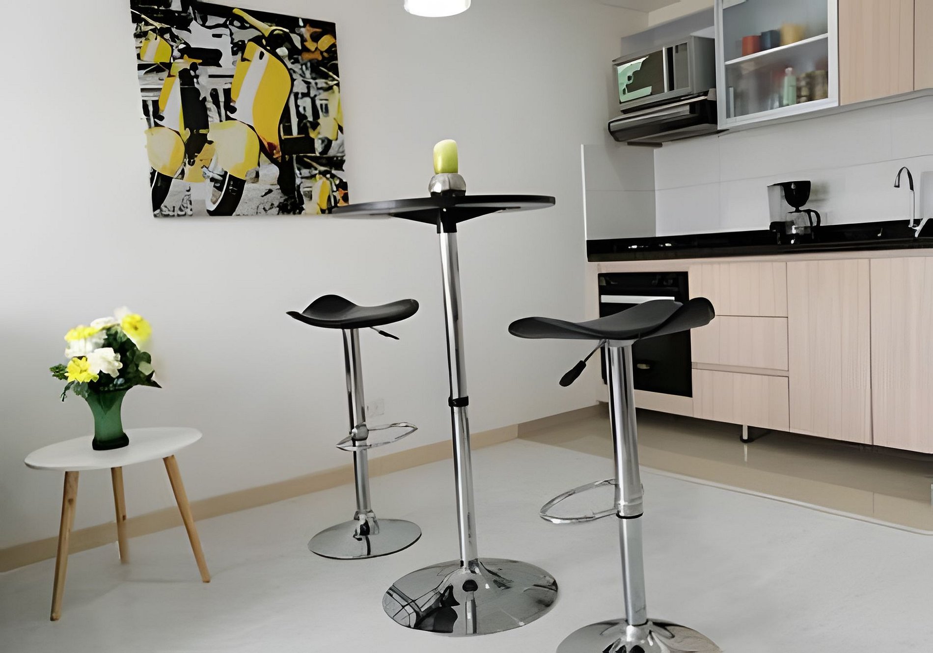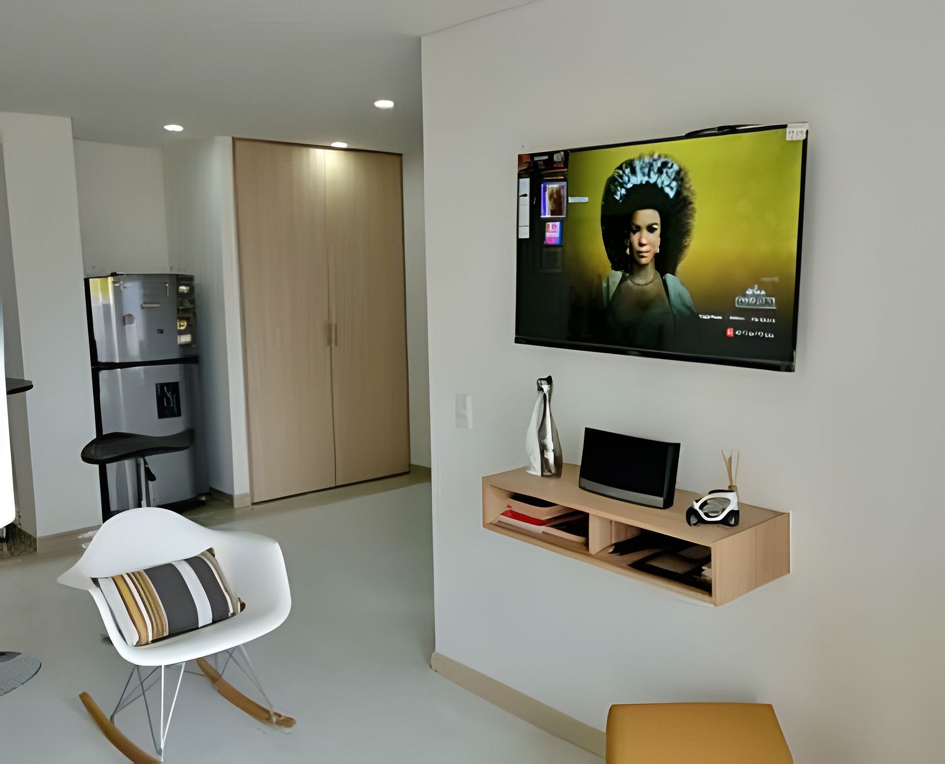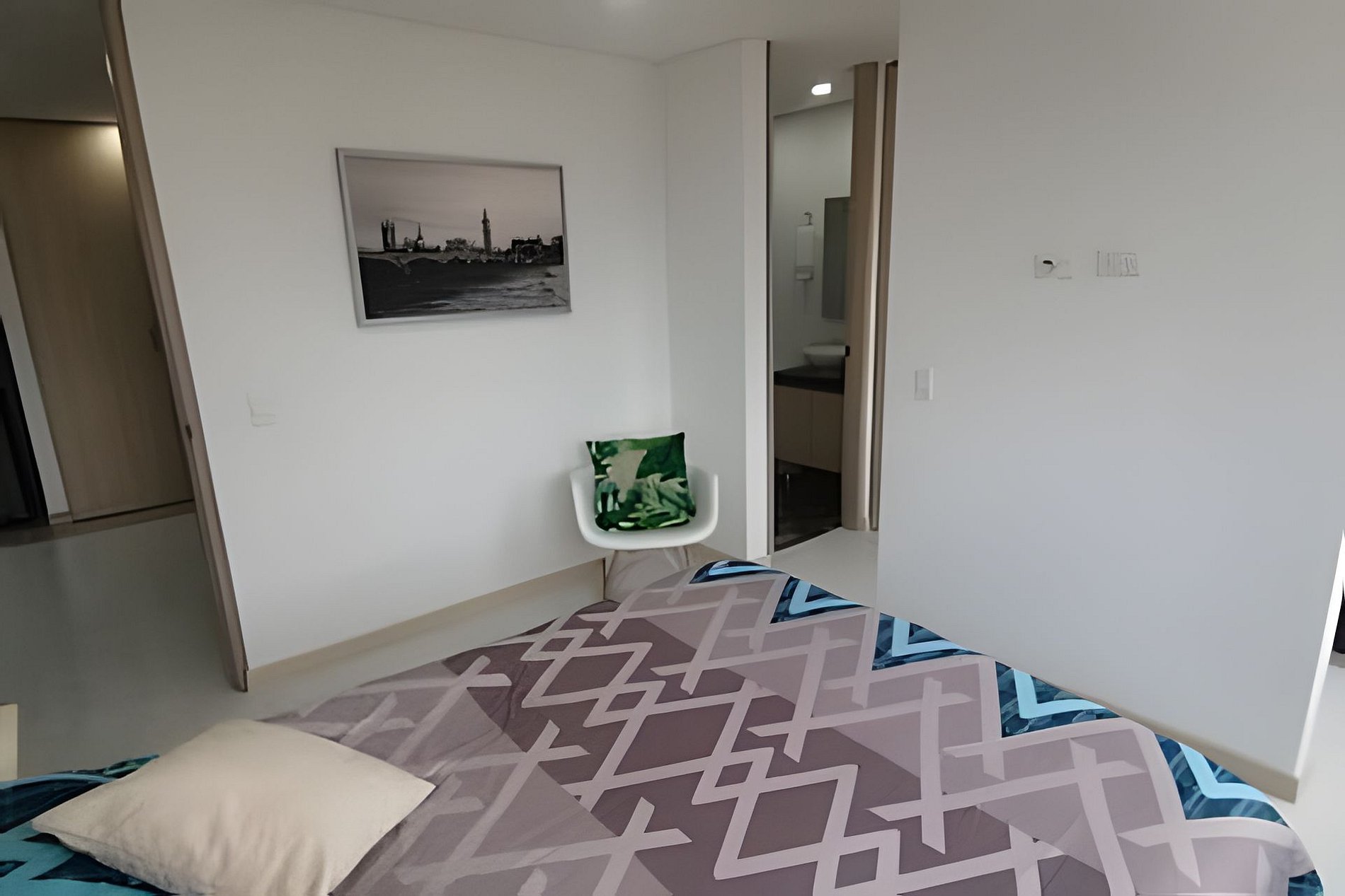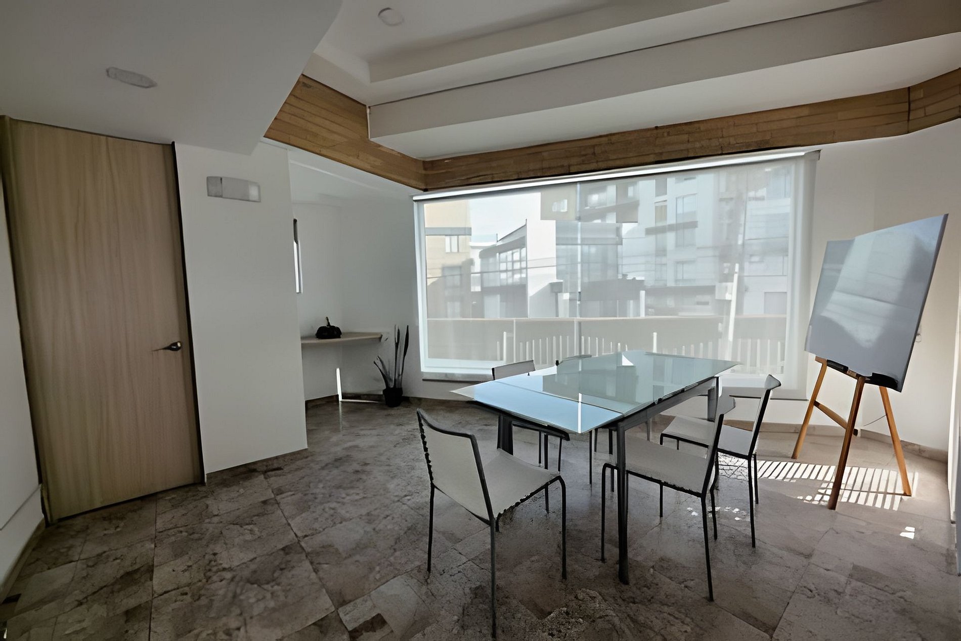 Apartaestudio con amplios espacios, el cuarto principal cuenta con iluminación natural y hermosa vista de Cajicá, cama doble, amplio Closet de ropa, baño privado y calentador de agua. Sala de estar con Sofacama doble, comedor y una amplia cocina integral equipada, espacio de estudio para trabajo Home Office y un amplio balcón con vsita hacia el coliceo de Cajicá y la sabana.