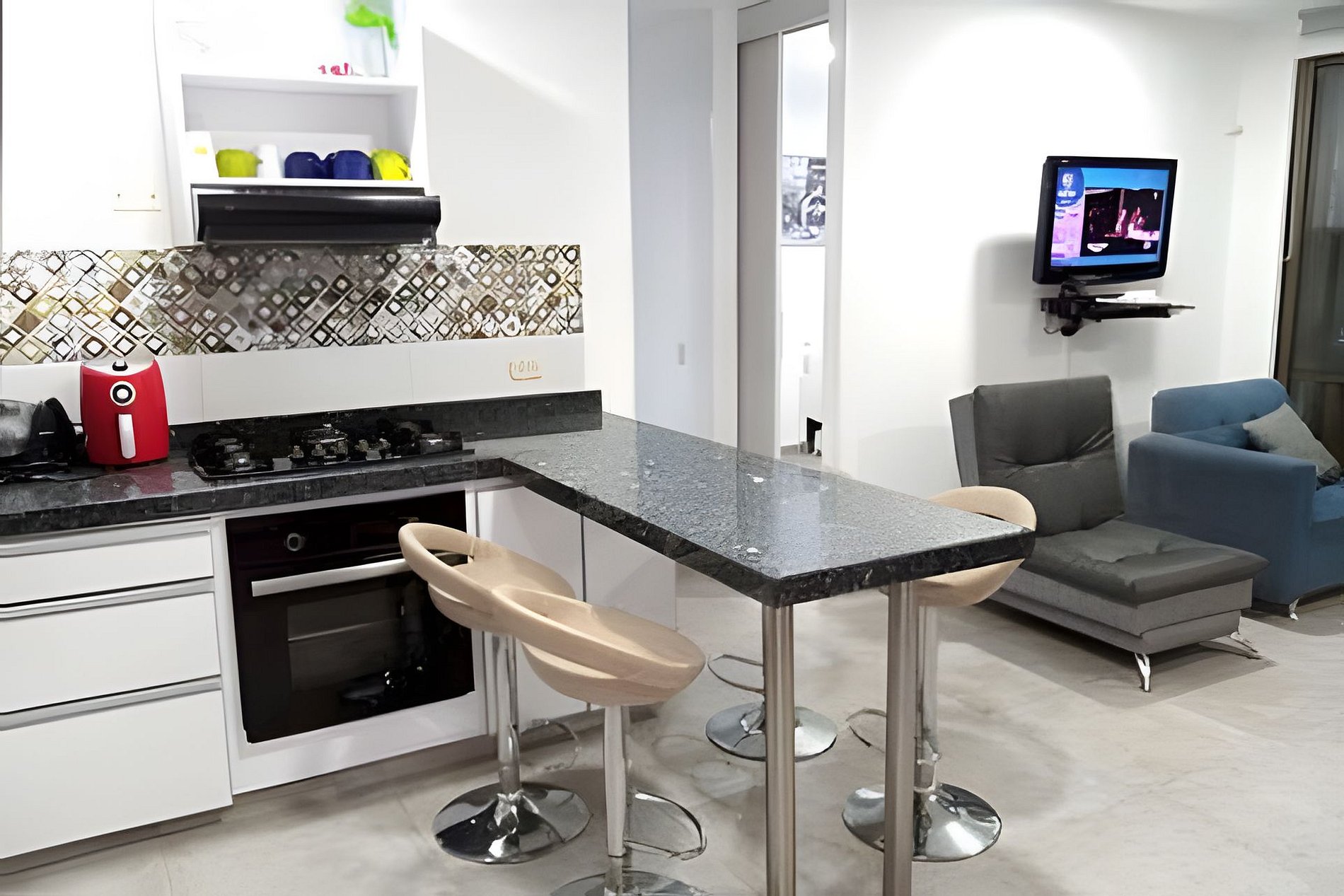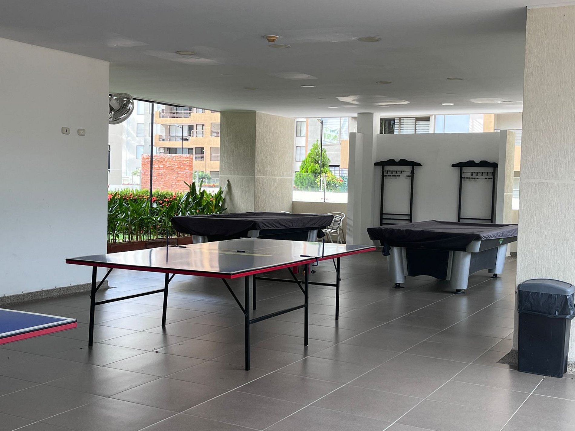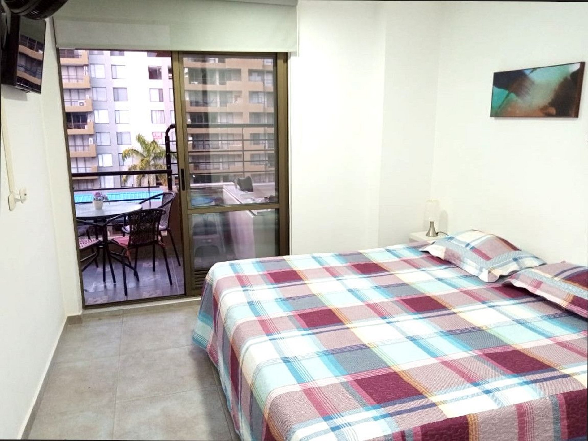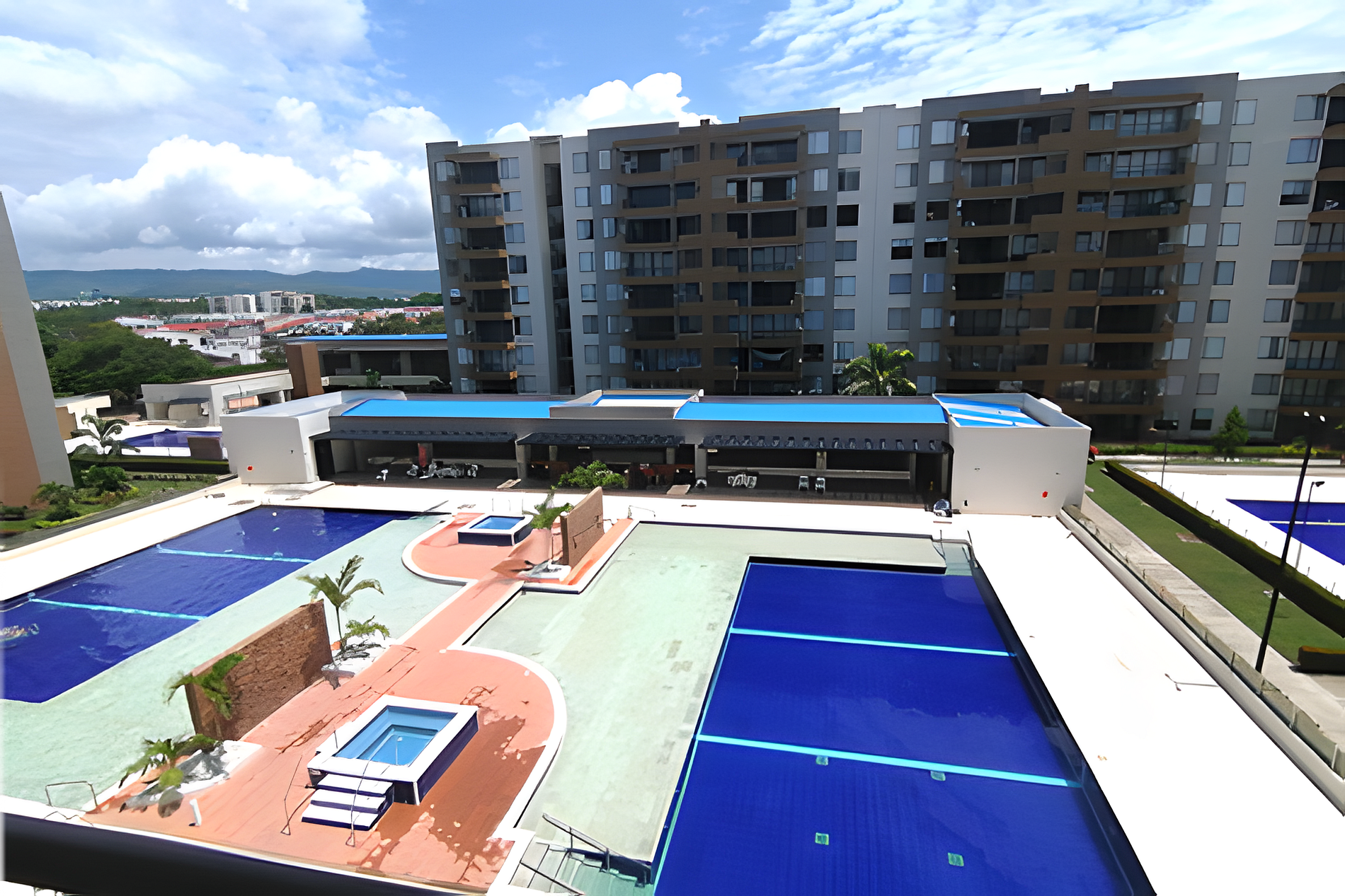 Confortable Apartamento ubicado en 5 piso con vista a la piscina, cuenta con 3 habitaciones con puertas corredizas, camas semi dobles mas nido; Alcoba principal cama King, baño privado y salida al balcón, amplios espacios en la sala y cocina dotada, un amplio balcón con comedor exterior y Jacuzzi para disfrutar en familia, cuenta con Tv directv, Internet fibra Óptica, parlante bluetooth, ventiladores, zona de ropas.