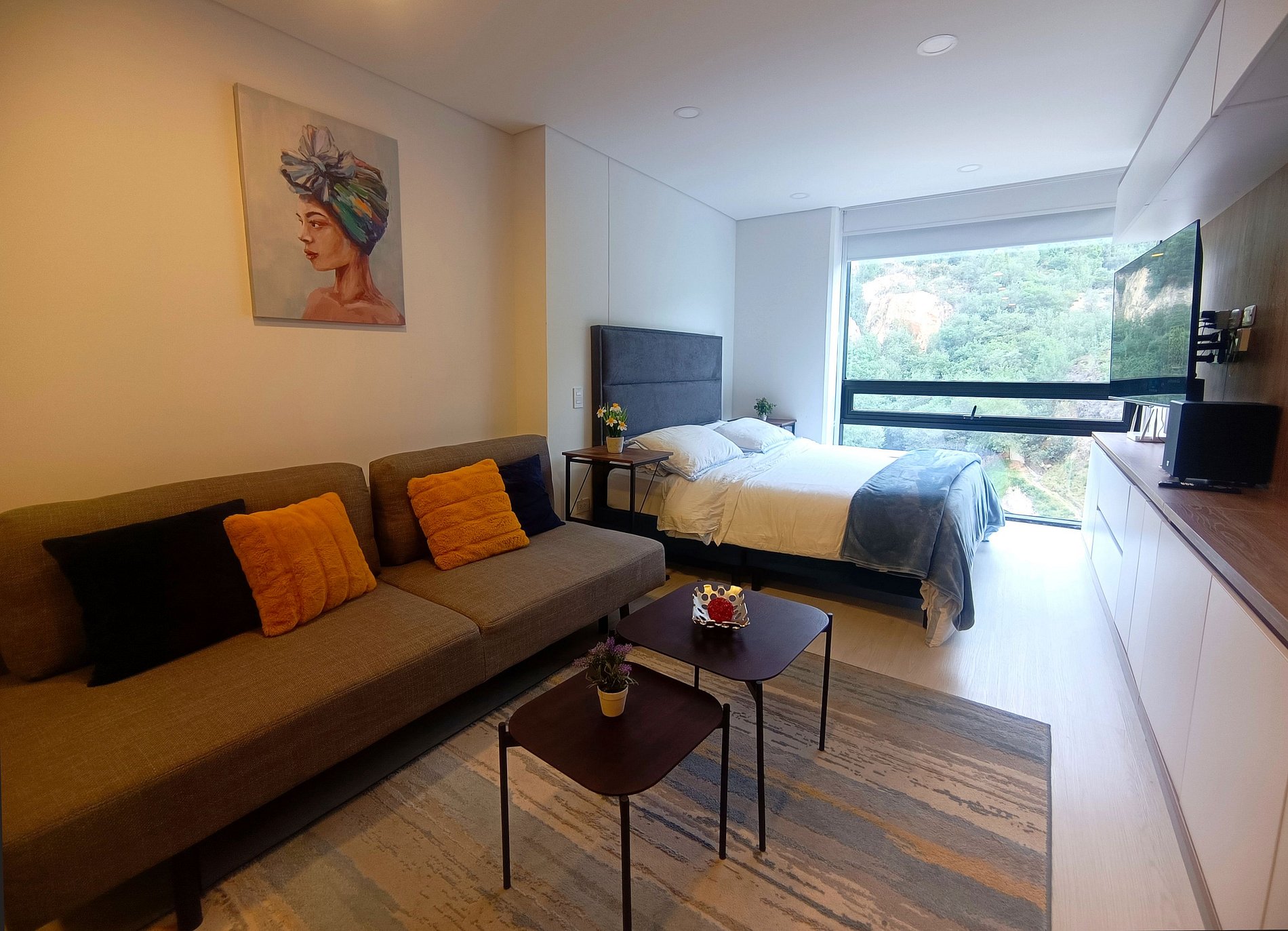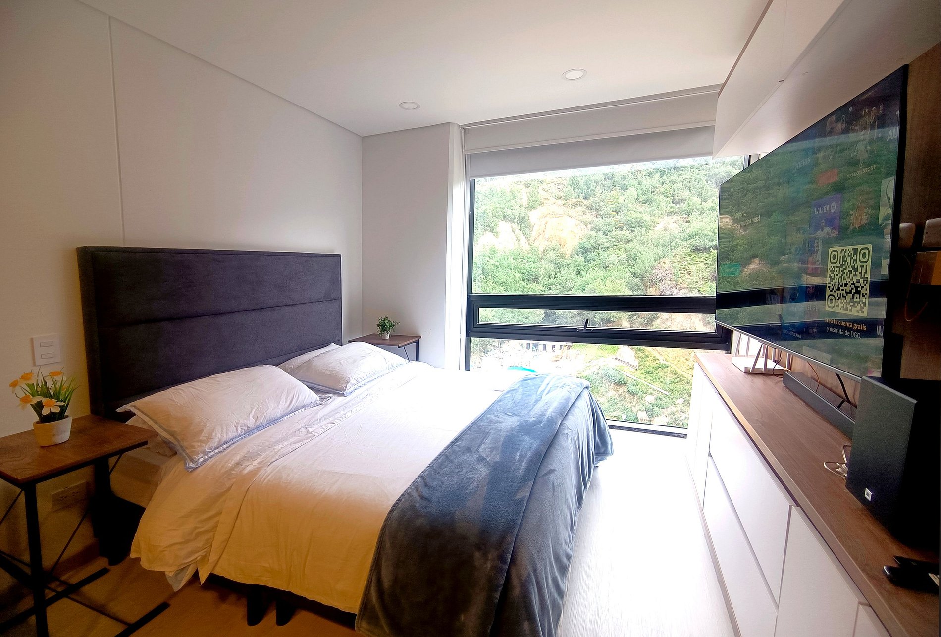 Confortable loft, con hermosa vista a la montaña en el piso 15, Ubicado en North Point Hills, cuenta con wifi 5G, 500Mg, Tv 55", DirectTv, Disney+, Start+, Hbo max. Ubicación central a 200 mts de la carrera 7- calle 155, fácil acceso transporte, cerca al parque Usaquen, parque 93, zona T, Country, Centro comercial Unicentro, Palatino, Hacienda Santa bárbara, Cedritos, restaurantes y bancos. Vive una gran experiencia en las zonas sociales: salón Coworking, Gimnasio, Ring de Boxeo y terraza.