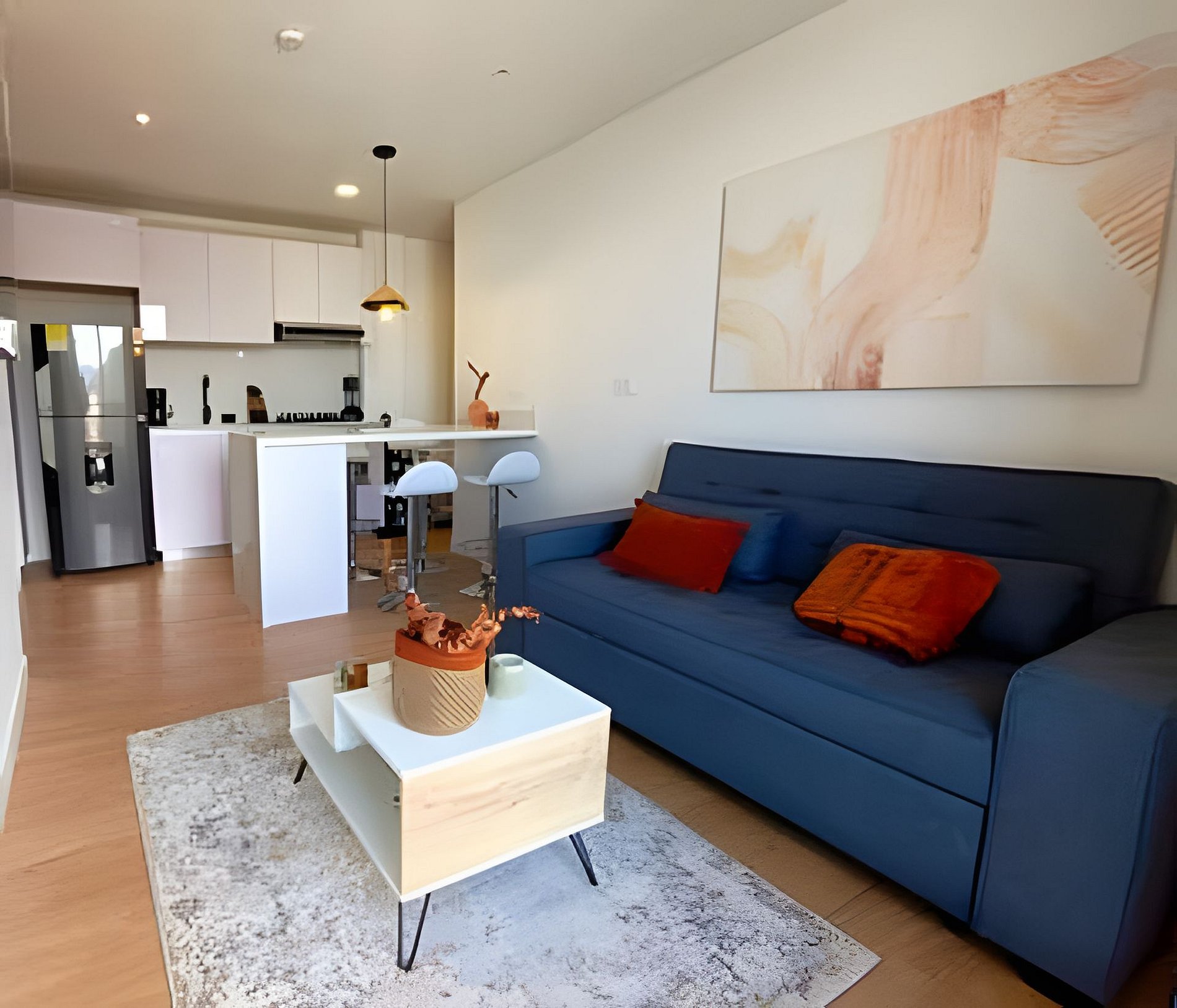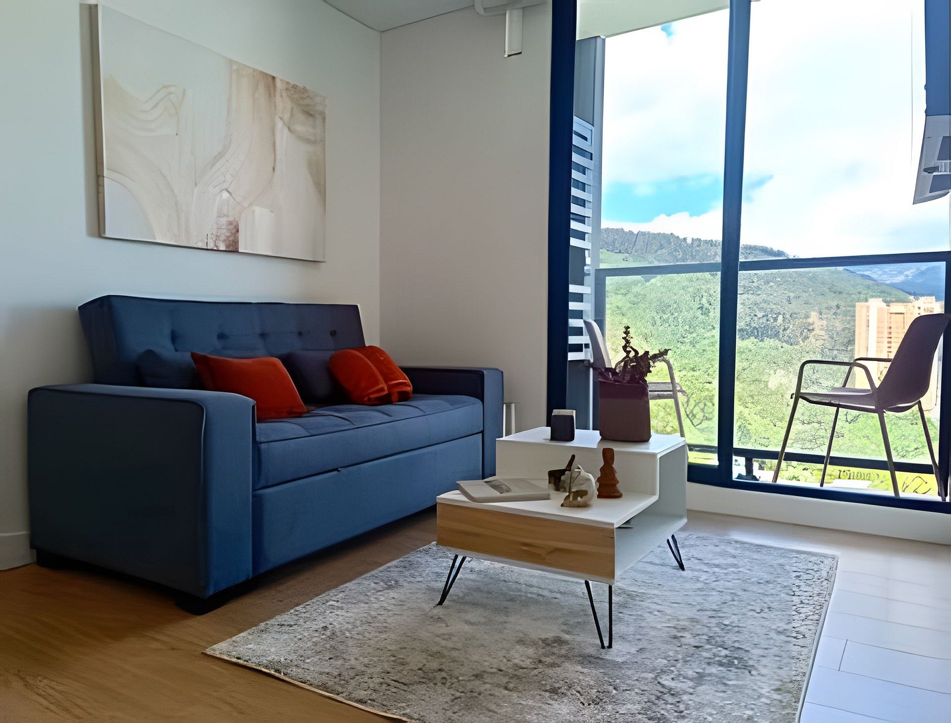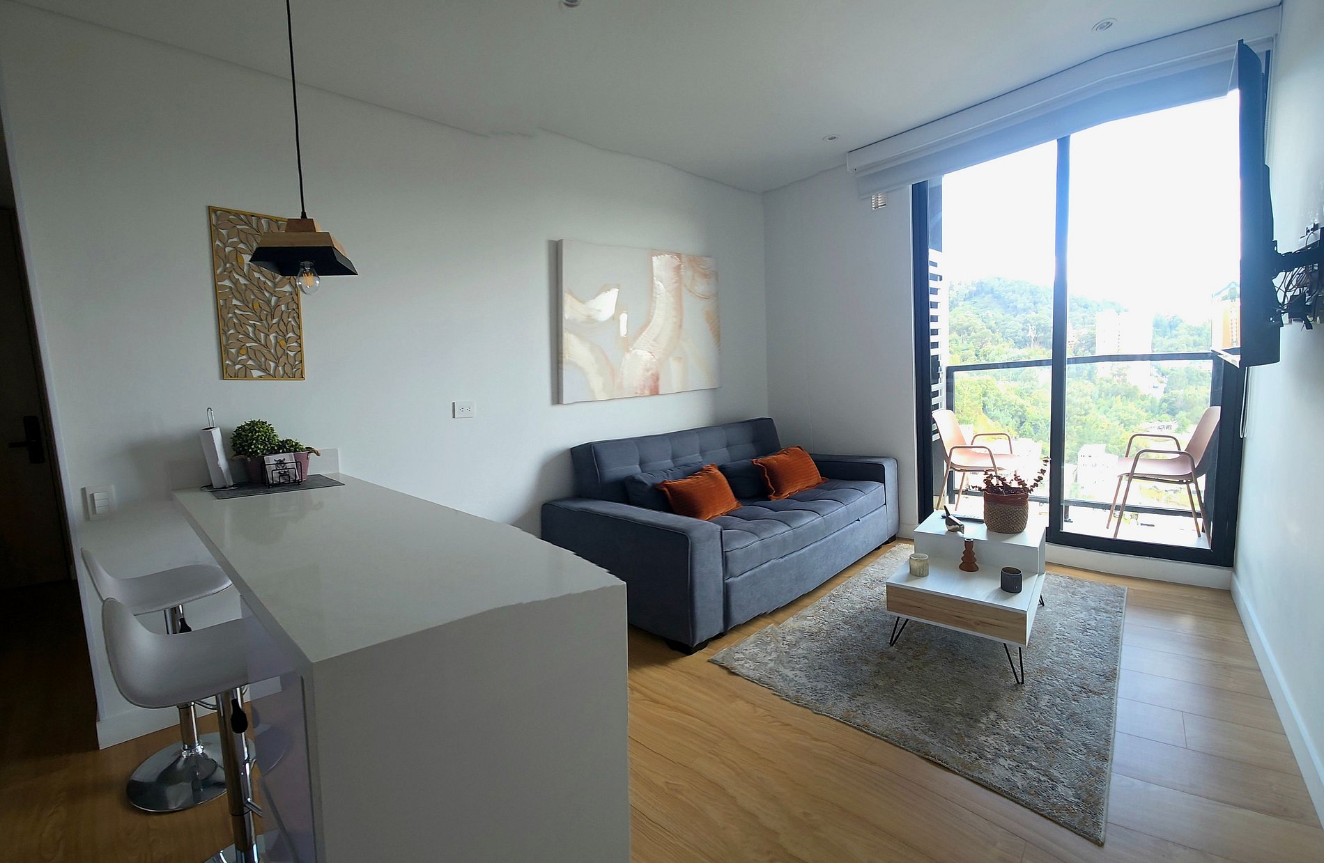 Equipado con cada detalle para una estadía placentera con lenceria de alta calidad, balcón, habitación independiente, cama doble, cocina equipada, nevera, lavadora - secadora, calentador de agua, compartimentos tipo closet, sofacama semi doble, Tv en habitación y sala, Netflix , Wifi 5G, cortina y blackout, parqueadero privado y Llegada autónoma con cerradura Digital,