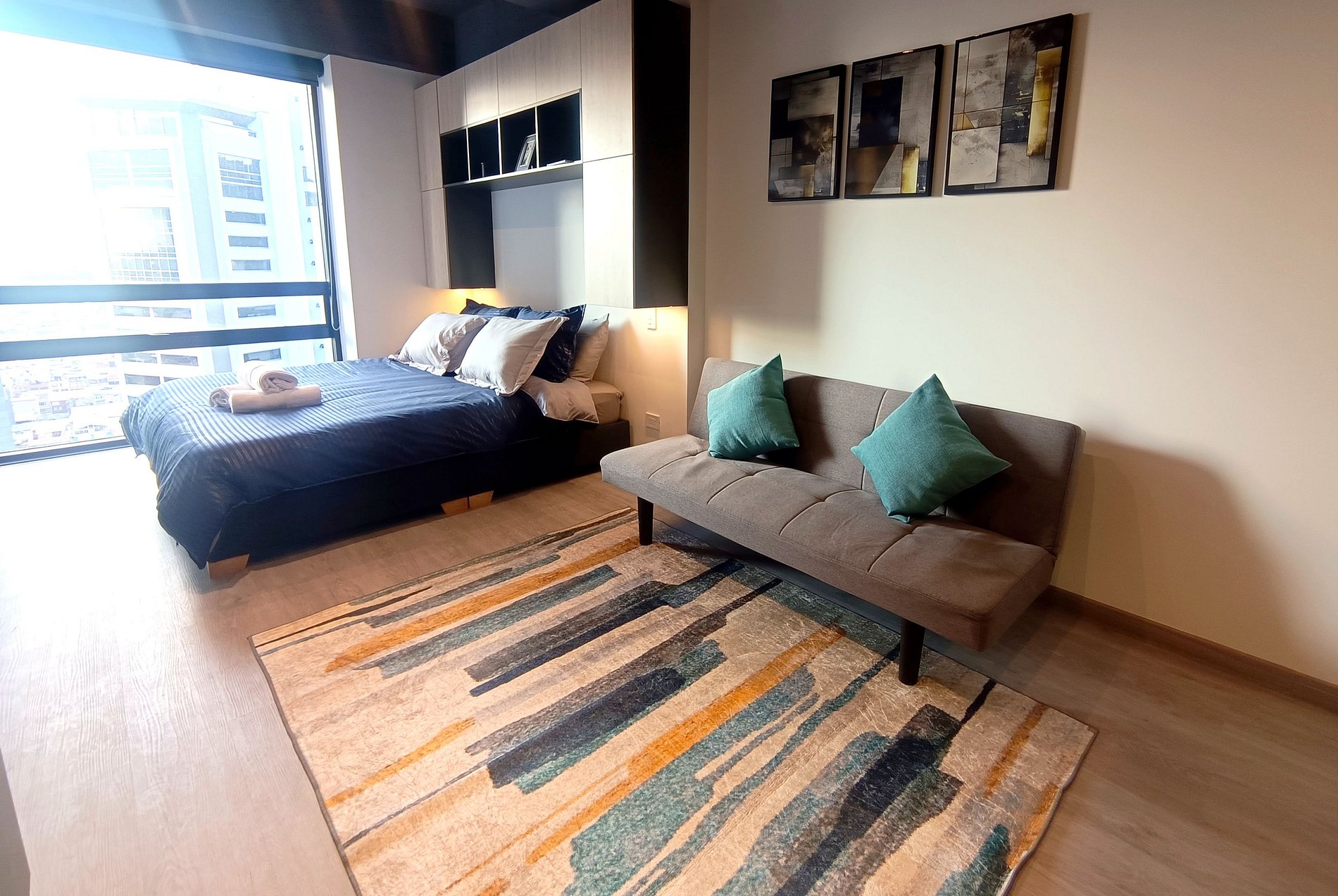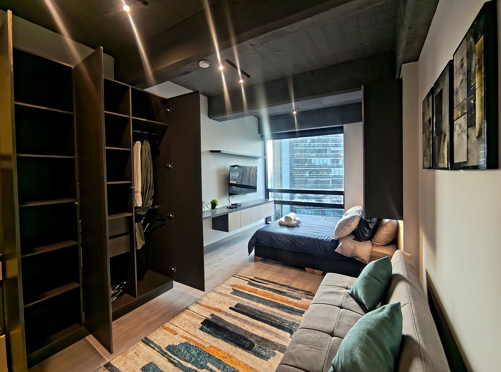 Este Amplio y confortable Apartamento ofrece la combinación perfecta de tranquilidad y comodidad con una vista panorámica y luz natural. Ideal para parejas, viajeros de negocios o pequeñas familias que desean una experiencia única en la ciudad de Bogotá. Equipado con cada detalle para una estadía placenteram, cama Queen, cocina equipada, nevera, lavadora - secadora, calentador de agua, comedor practico que funciona como escritorio, compartimentos tipo closet, sofacama doble, Tv 50" , servicio de internet 350Mg, plan de canales claro, cortina y blackout.