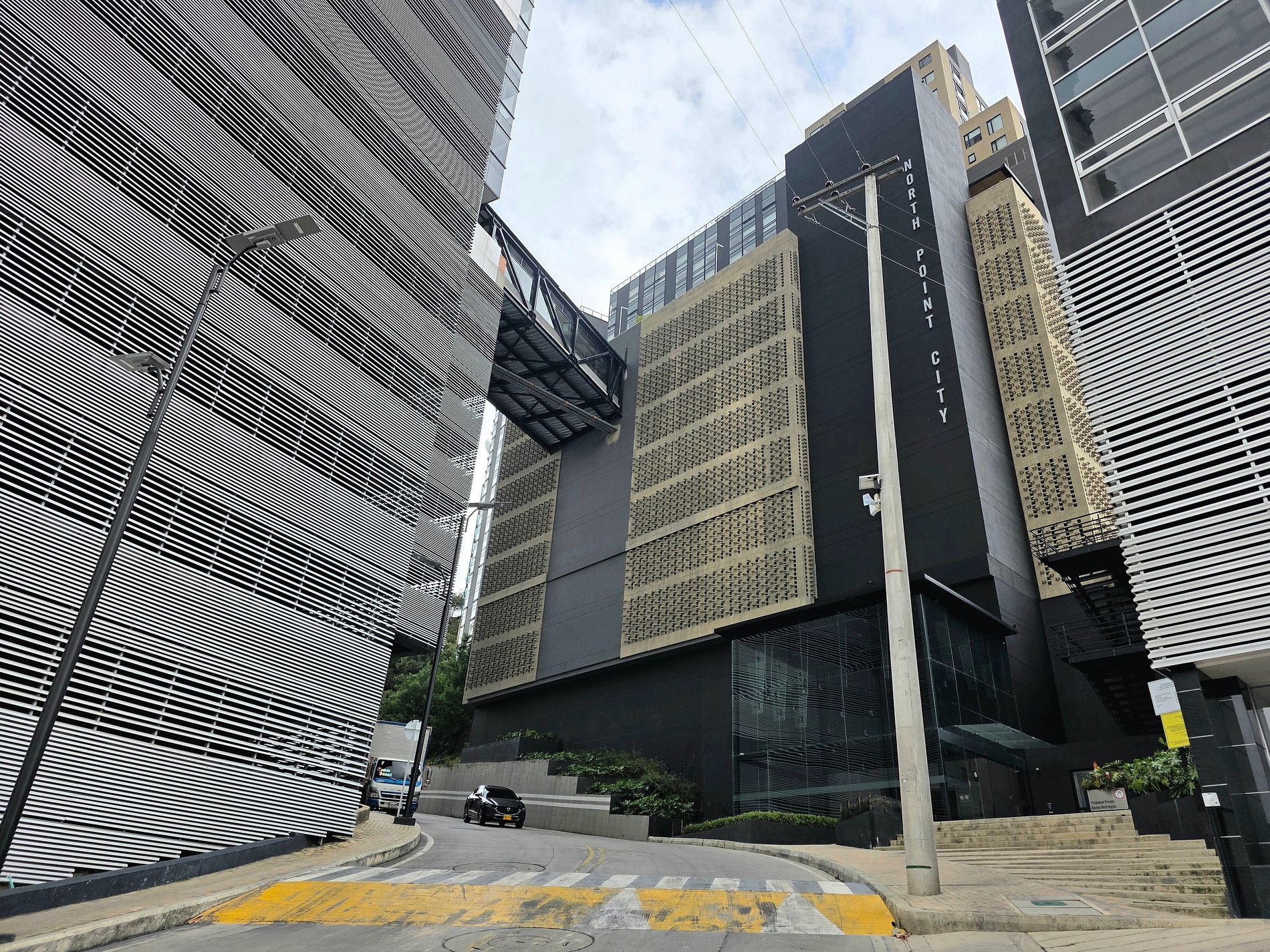 Acceso directo por ascensor al centro comercial North Point Mall, el cual cuenta plazoleta de comidas, tiendas, oficinas de tramites entre otros. Por la Carrera 7, caminando hacia el norte están ubicados los bancos: Bancolombia, Davivienda, Bogotá. Drogueria, supermercado Oxxo, y al lado del Banco Bogotá esta la plazoleta de comidas con variedad de restaurantes.