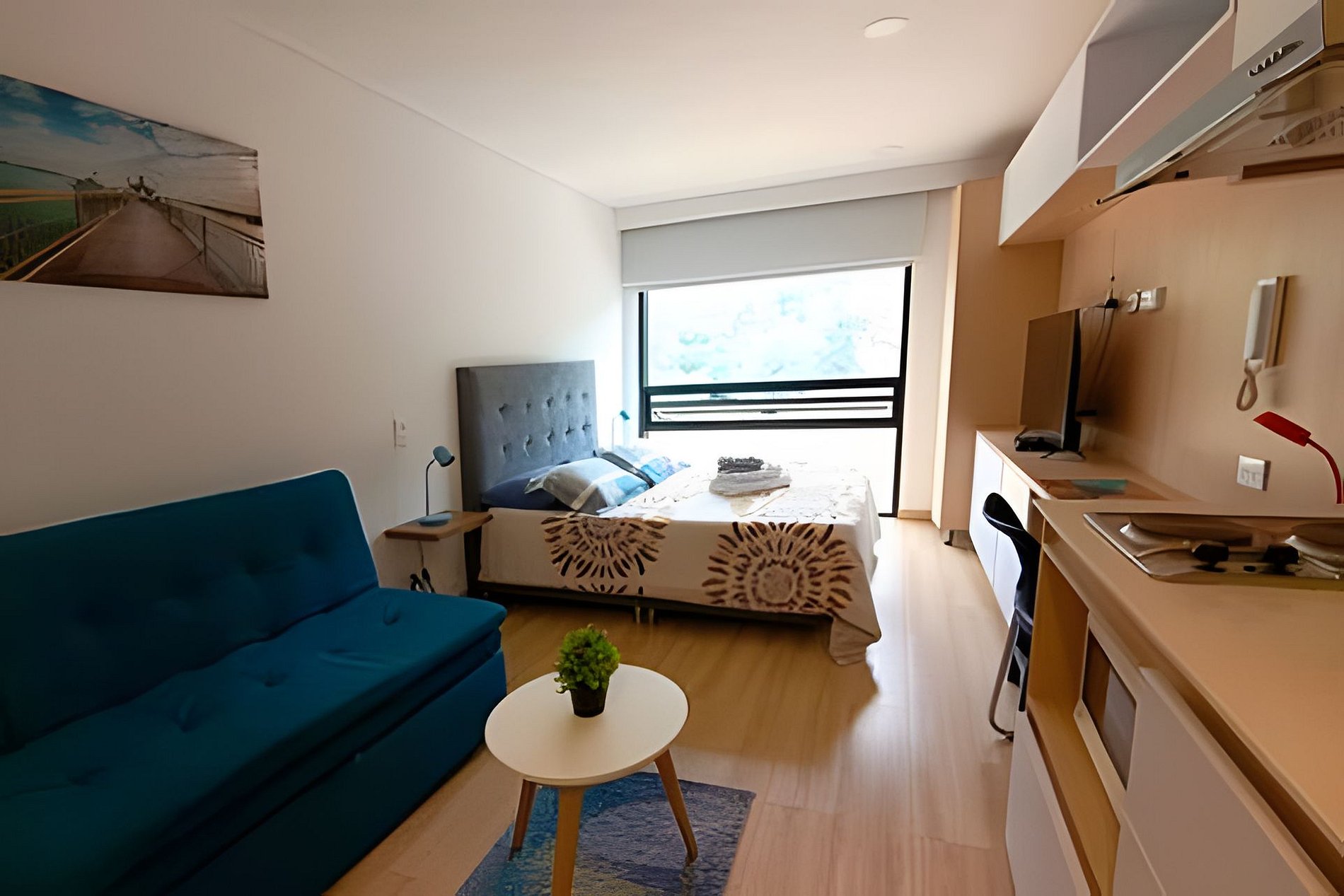 Disfruta la tranquilidad y descanso en este acogedor loft con vista a la montaña, piso 12, cocina equipada, microondas, nevera, lavadora, Tv 50", Netflix, wifi fibra óptica. Ubicado a 200 mts de la carrera 7 con calle 155, Fácil acceso transporte, cerca al parque Usaquén, zona T, Country, Centro comercial Unicentro, Palatino, Hacienda Santa bárbara, Cedritos, restaurantes bancos. Reserva ahora y vive una experiencia única en las zonas sociales como Coworking, Gimnasio, Ring de Boxeo y terraza.